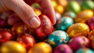 LINDT Lindor trifft fruchtige Ostereier 12 versch. Sorten Inhalt 998g, 85 Stk.
