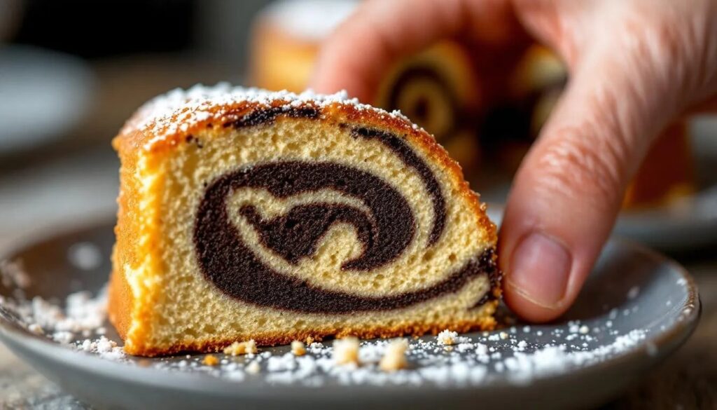Regionale Varianten finden sich in ganz Europa – in Österreich oft mit einem Hauch Rum im Kakaoteig, in der Schweiz mit gehackten Zartbitterschokoladenstückchen statt reiner Kakaopaste. In Nordamerika hat der Marble Cake eine eigene Tradition entwickelt: Dort wird häufig Cream Cheese in den Teig gearbeitet – ein Prinzip, das dem Ricotta-Trick dieser Version strukturell sehr nahesteht und denselben Feuchtigkeitseffekt erzielt.